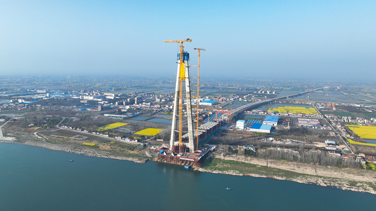 观音寺长江大桥主塔封顶 -